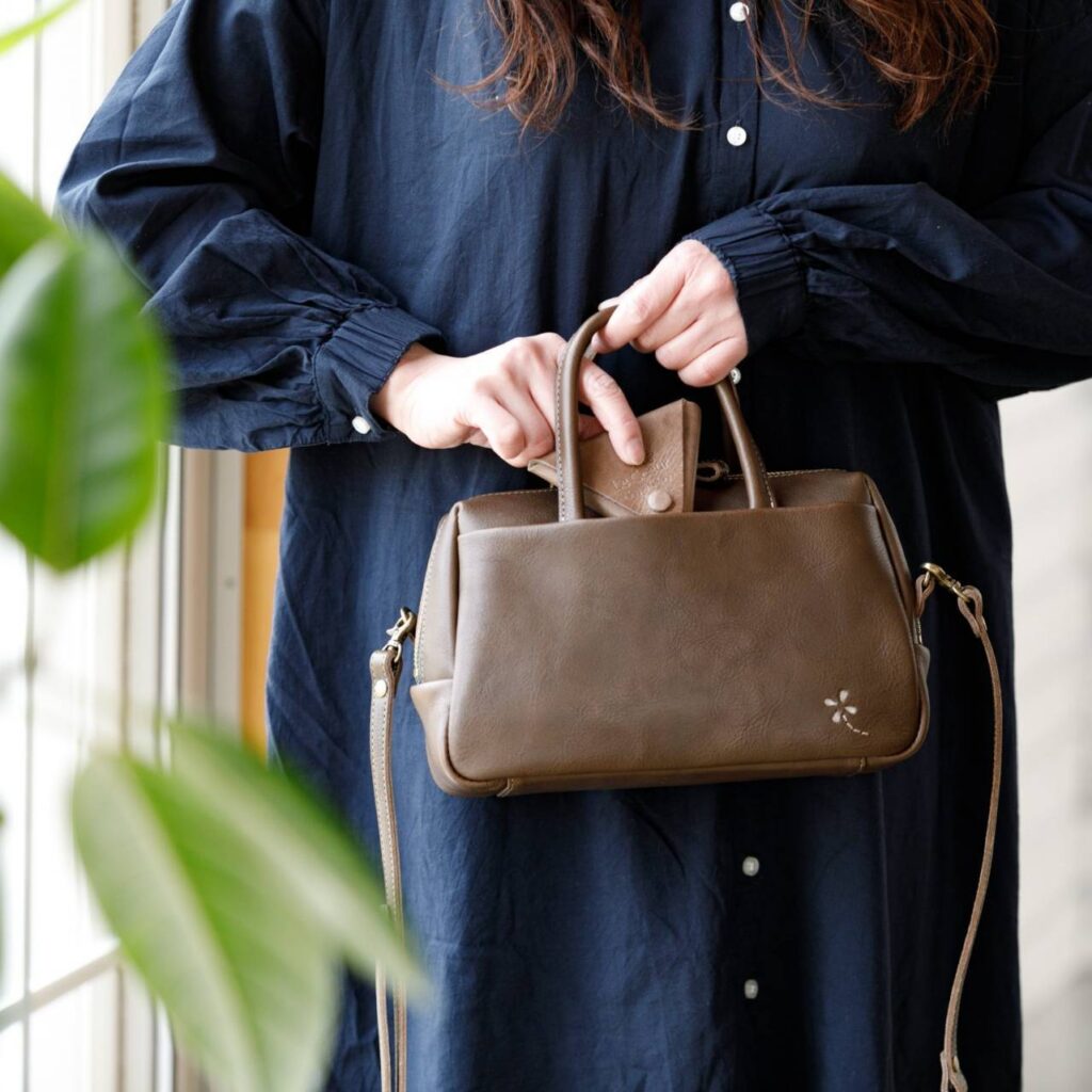 かばん屋さんのショルダーバッグ完成しました。このバッグはモデルさんが持っているように柔らかいイメージで作りました。 ちょっとしたお出かけにちょうどいいサイズになっております。素材にはヌメオイルシュリンクという革を使用。柔らかく適度なシボ感で革自体にカジュアルさを持ってる革になります。